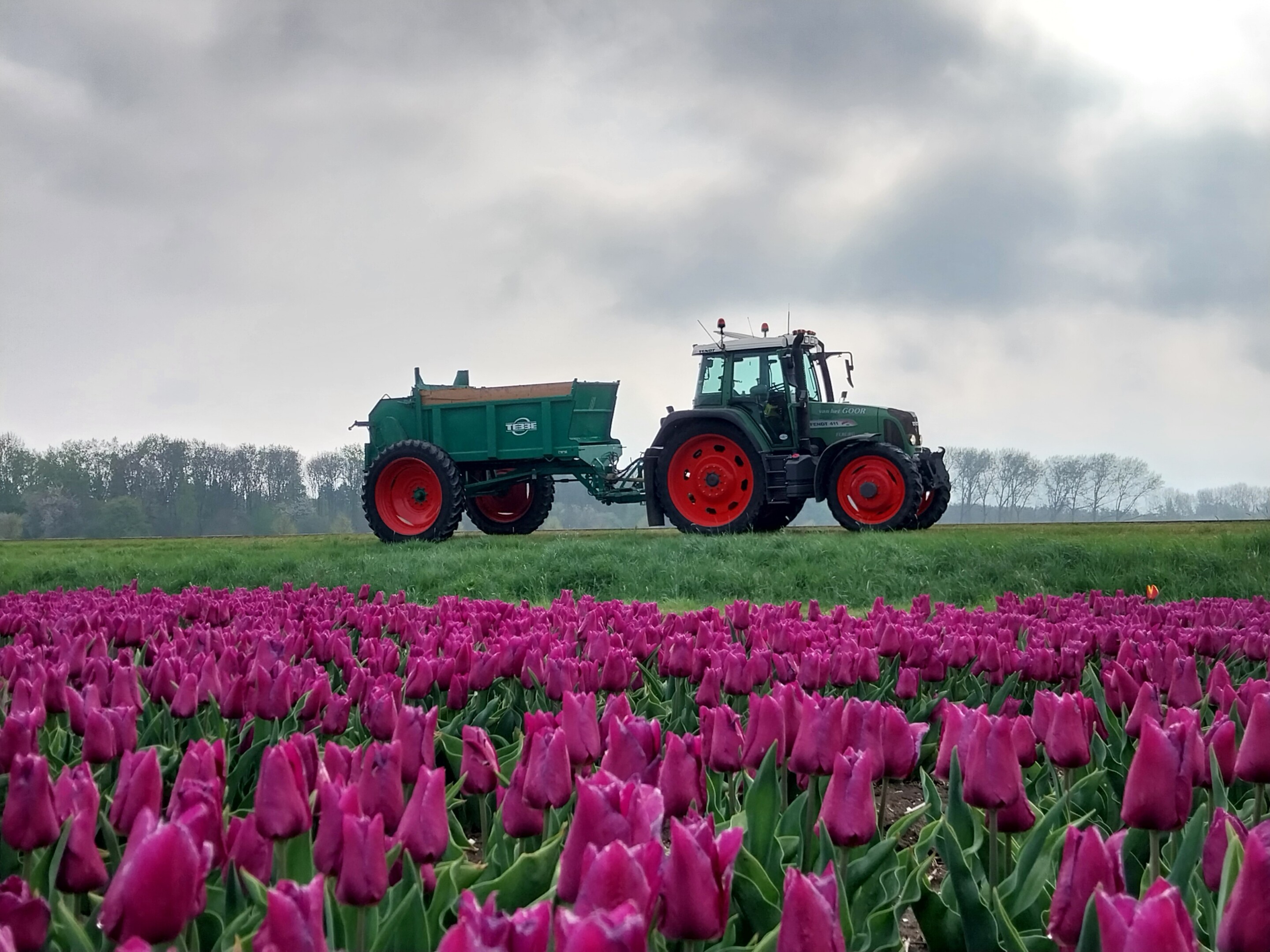 Voor rijenbemesting beschikken wij over een strooier met een inhoud van 4 m³. De strooier heeft een spoorbreedte van 3 meter, terwijl de trekker op 1,5 meter rijdt. Met deze combinatie kunnen wij nauwkeurig werken tussen de gewassen door.
